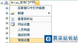 這里簡單舉個小例子,修改網站的徽標。點擊根節點就會彈出下拉框,點擊常規設置: