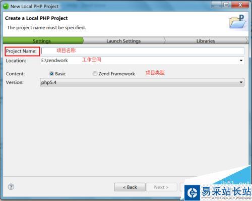 1、打開zend studio,在左側的空白區域右鍵--new--project,在彈出的窗口中選擇local php project---next,填寫自己的項目名稱,選擇工作空間,我這里使用默認的,項目類型:基本的還有zend framework框架型項目,然后選擇php版本,next;