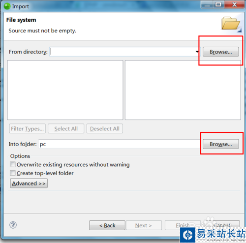 5、擊上邊的Browse..按鈕選擇的項目工程文件路徑,在左邊的窗口中的checkbox選中(我這里忘記截圖了...),然后確認文件是否全部選中,完成之后點擊Next;