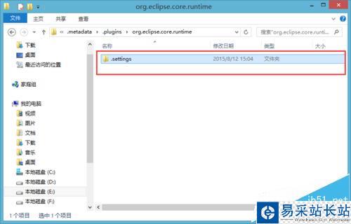 5、關閉eclipse,接著打開eclipse的工作空間,然后打開.metadata/.plugins/org.eclipse.core.runtime將.sttings文件刪了再從新打開eclipse就行了。