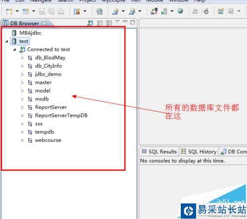 6、連接完成后你會看到數據庫中的文件,所有的數據庫都在這。一會我們使用我們需要的即可。