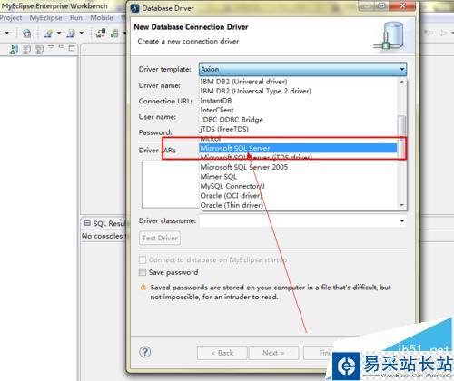 4、配置連接文件。根據你的數據庫選擇不同的數據連接方式,填寫你要創建的連接的名字,URL等信息,如圖。最重要的是加載驅動,沒有的話到網上下載自己數據庫的驅動。我這里是JDBC,連接SQL數據庫。單擊next——finish。