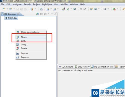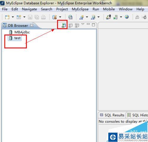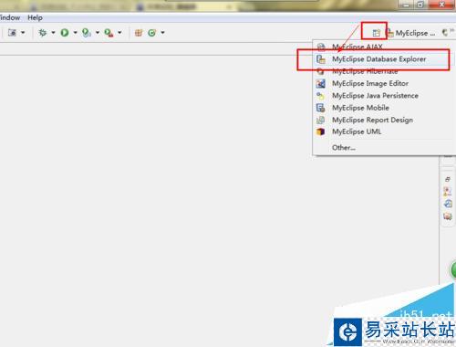 2、創建數據庫驅動連接。單擊右上角的編輯模式,選擇Myeclipse Database Explorer。