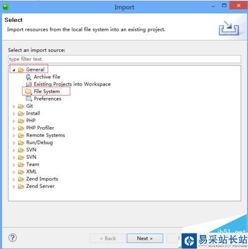 注意事項:如果Zend Studio工作目錄與我們要導入的目錄路徑不同,導入方式時選擇File System方式,另導入前最好備份下。