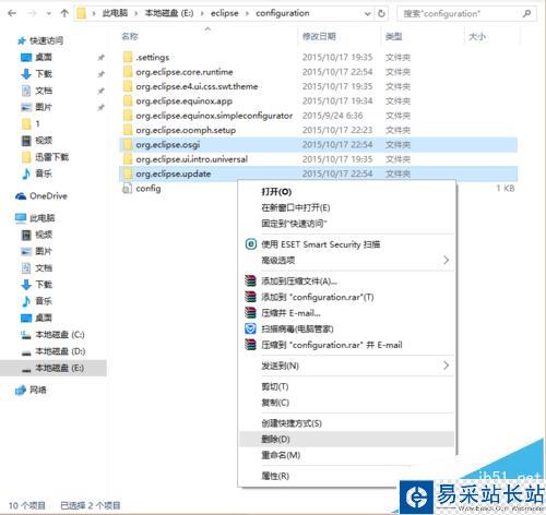 2、打開Eclipse安裝目錄(本人是把它安裝在E:/Eclipse目錄下)下的configuration目錄,刪除org.eclipse.update和org.eclipse.osgi這兩個文件夾,再啟動Eclipse就會發現問題解決了