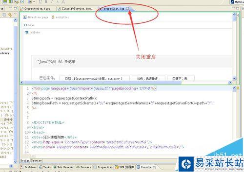 7、關(guān)閉已經(jīng)啟動的jsp文件,重啟ta,看效果;