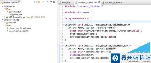 1、創建java項目,編寫有main和兩個帶有native關鍵字的方法(如圖),保存編譯。