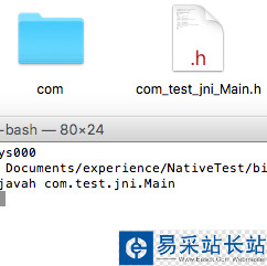 2、進入bin文件夾,在命令行中輸入javah -jni com.test.jni.Main以創建c++頭文件。頭文件中包含兩個native方法的c++寫法。