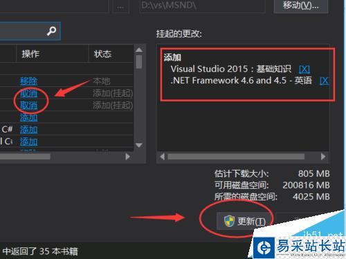 5、我們可以點擊自己需要的文檔后邊的“添加”,之后我們可以看到在窗口右側的列表框里出現了我們需要添加的文檔名稱,接著我們需要點擊“更新”按鈕來自動安裝這些幫助文檔。
