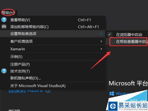 2、我們該如何安裝離線幫助文檔呢?首先,我們需要在visual studio2015的幫助首選項中選擇”在幫助查看器中啟動“。