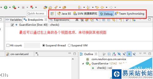 5、最后,取消了所有斷點(diǎn)之后,可以通過切換不同的視圖回到你想要的界面。