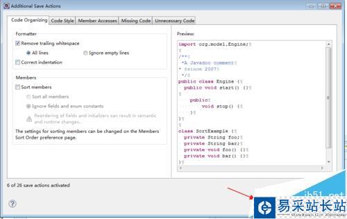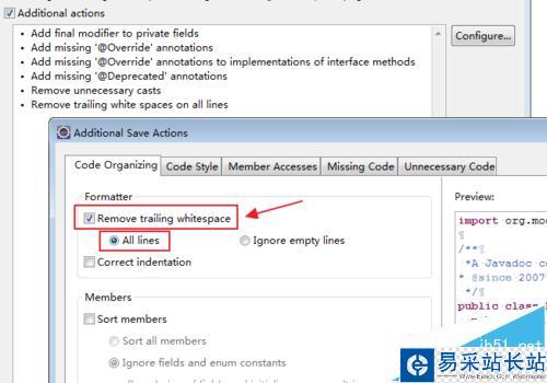 5、此時會出現如下界面,只要勾選【Remove trailing whitespace】選擇【All lines】即可。