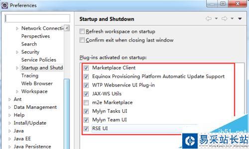 3、此時在右側可以看到所有的啟動項,在eclipse啟動的時候會自動啟動。
