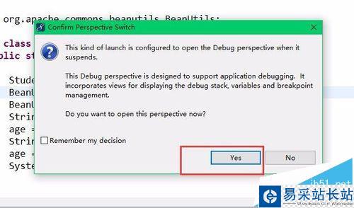 6、它會自動提示你是否打開調試模式--點擊yes,進入到調試模式下