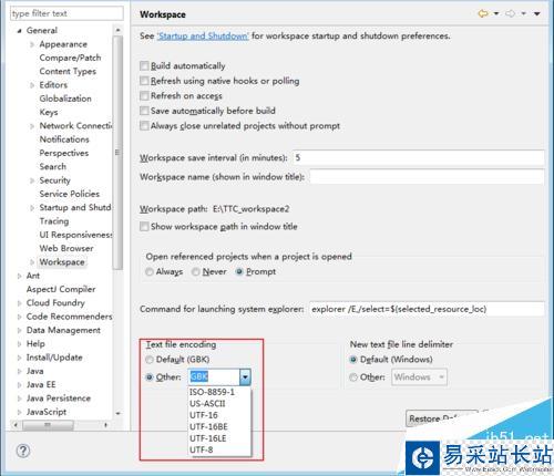 3、點選【Text file encoding】下的【Other】,選擇你要的編碼格式,例如UTF-8