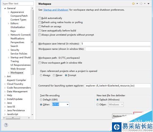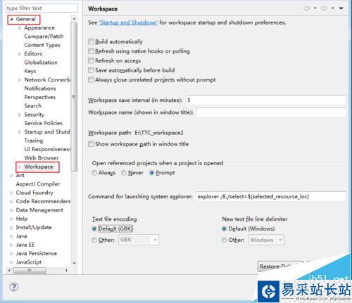 2、點開【General】>>然后把鼠標點擊在【Workspace】上