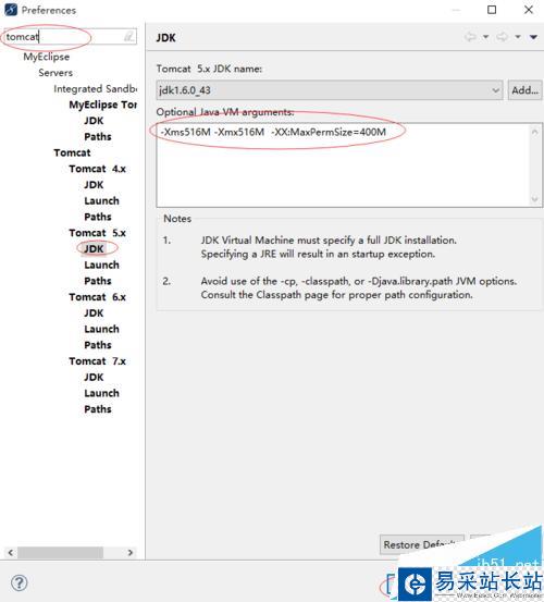2、然后在輸入欄輸入tomcat,找到你用的tomcat選擇jdk,(-Xms516M -Xmx516M -XX:MaxPermSize=400M)把這個粘貼里面,然后再點擊OK