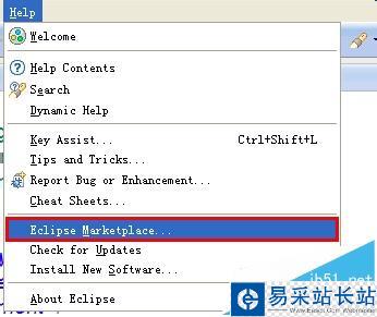 1、同樣選擇Eclipse-->"Help",這里選擇"Eclipse MarketsPlace"這個(gè)菜單,如下圖