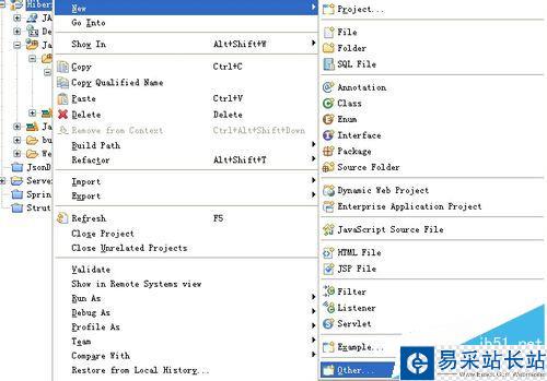 1、選中需要新建Hibernate的項(xiàng)目,右鍵“New”-->“Other”-->“Hibernate”,選擇“...(cfg.xml)”,選擇目錄(src),保持原有名稱(chēng)不變,確認(rèn)即可。