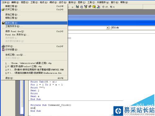 9、運行調試成功后,對該文件進行保存,執行文件-保存工程命令,首先要保存窗體,然后接著保存工程,如果有需要的話把它生成exe文件。