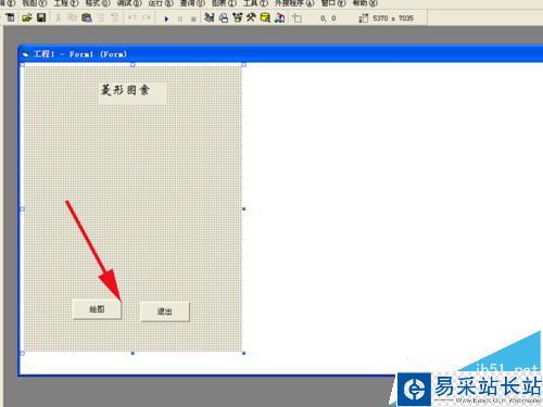 4、在工具箱里連續兩次雙擊按鈕工具,在窗體出現兩個按鈕,調節按鈕在窗體上的位置,修改兩個按鈕的caption屬性,一個為繪圖,一個為退出。
