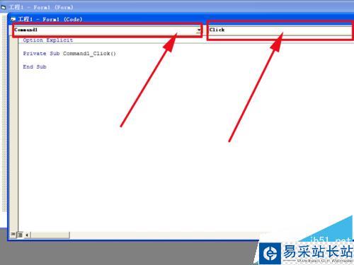 5、雙擊繪圖按鈕進入代碼區域,在對象中選擇commmand1,在過程中選擇click,然后就可以在此輸入代碼了。