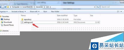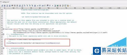 4、同時(shí),打開settings.xml的文件,修改 如圖的內(nèi)容,為 剛創(chuàng)建的 settings.xml的存放地址, jar庫 都是放在 repository 文件夾下的。