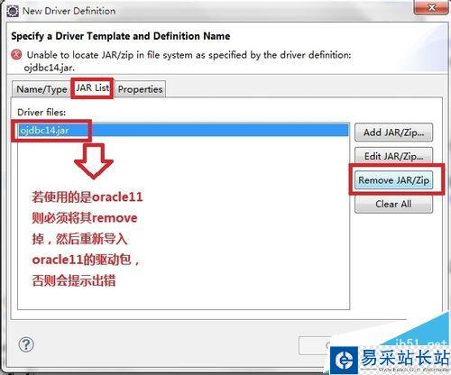 8、找到JAR List,若大家使用的是oracle11,請將其中的ojdbc14給remove掉,否則,Eclipse會不停提示出錯。