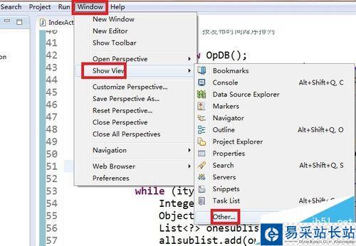 2、打開Eclipse,找到“Window”--“Show View”--“Other...”