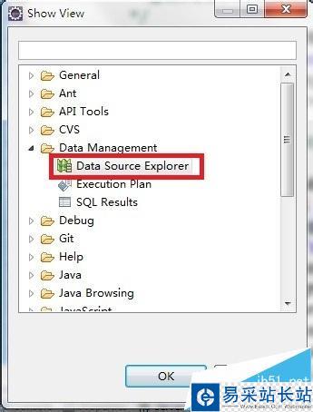 3、在彈出的新窗口中,打開文件夾“Data Management”找到“Data Source Explorer”,并單擊“OK”。