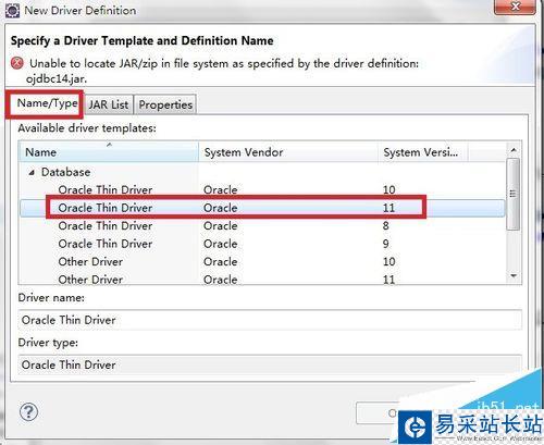 7、緊接上步,在新的對話框中,找到你所使用的oracle版本,建議選用Oracle Thin Driver,靈活,方便。