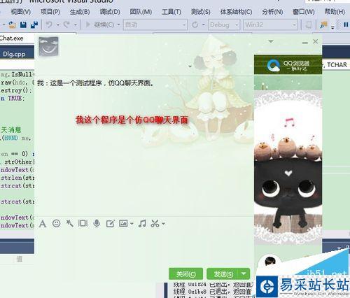 8、稍后,程序就啟動了(我這個程序是一個仿QQ聊天界面窗口)。以后,如果再次調試該程序,就無需再次等待了(因為符號集已經從服務器下載到本地)。