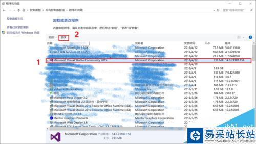 6、找到安裝好的visual studio,點擊然后再選擇圖中的“更改“,跳到第7步驟。