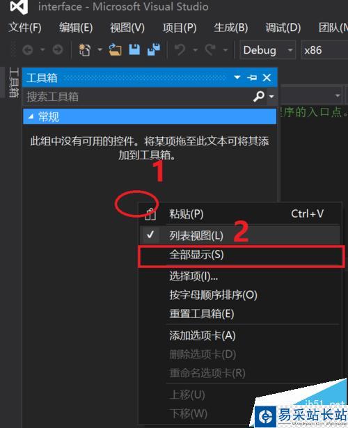 9、再在工具箱空白處點擊右鍵,選擇”顯示全部“,跳到第10步驟。