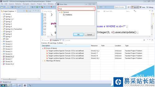 2、出現圖中下方一系列的小紅叉,Target runtime Apache Tomcat v7.0 is not defined. 這就是問題的所在。