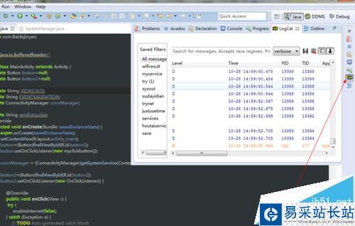 2、這個時候你就會看到你要的logcat了,如圖所示。