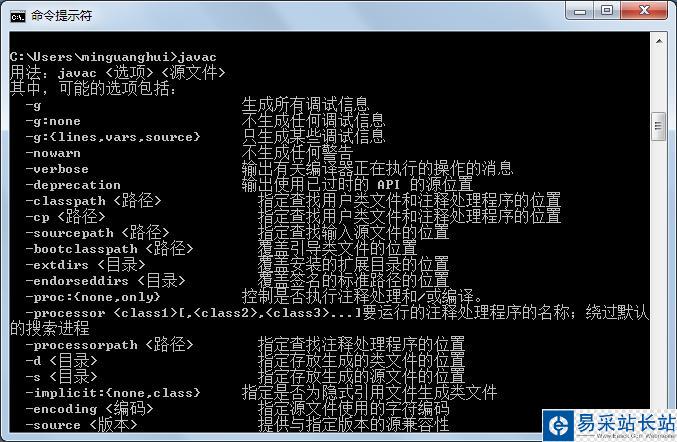 再輸入javac,又出現以下中文列表: