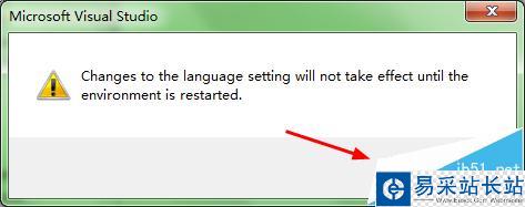 11、此時彈出一個窗口,說明必須重新啟動軟件,才會顯示中文。