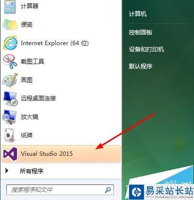 1、點擊開始按鈕,在上拉窗口中找到visual studio 2015。