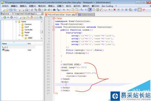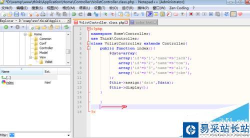 3、將notepad++重啟后,就可以在編輯器里輸入代碼,如箭頭所示的地方就是我馬上要輸入的代碼