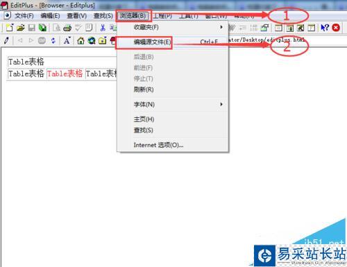 5、如果要返回進行HTML代碼編輯或者修改,則點擊菜單欄的瀏覽器,然后選擇:編輯源文件項;或者直接按下Ctrl+E快捷鍵。