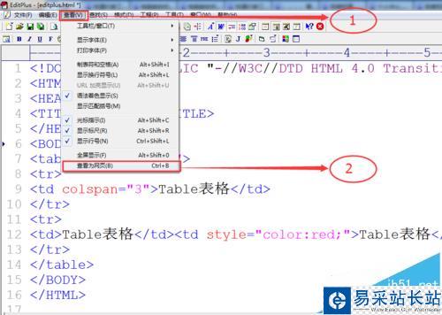 3、編寫好HTML代碼,要查看HTML效果。點擊查看--》查看為網頁;或者直接按下:Ctrl+B快捷鍵;