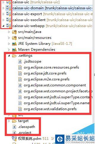 6、這個時候來看項目的配置文件,如圖所示,配置忽略提交的文件沒有顯示*號顯示未提交,項目與svn資源庫保持一致: