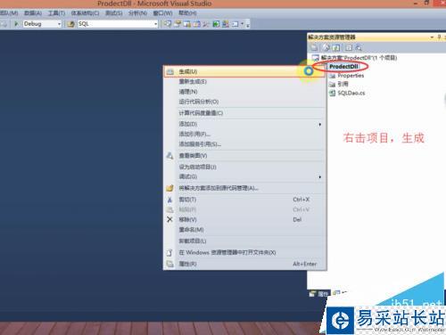 5、右擊項(xiàng)目——》生成,項(xiàng)目將編譯生成DLL文件