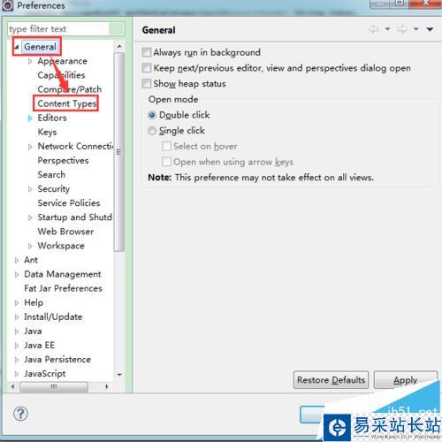 3、選擇【General】-》 【Content Types】,如圖
