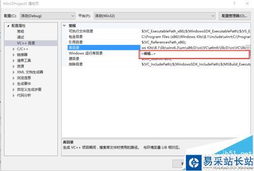 5、但是生成解決方案還會出現(xiàn)無法打開ucrtd.lib的問題,繼續(xù)打開屬性標(biāo)簽頁,編輯庫目錄,