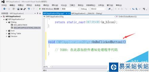 7、添加完后在對話框上雙擊計算按鈕,就會生成相應的消息映射,進入如下代碼中,見下圖