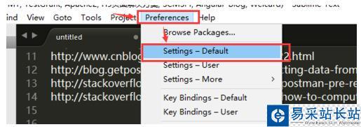1、首先進入系統默認的設置屬性文件中,操作:菜單Preferences --> Settings Default