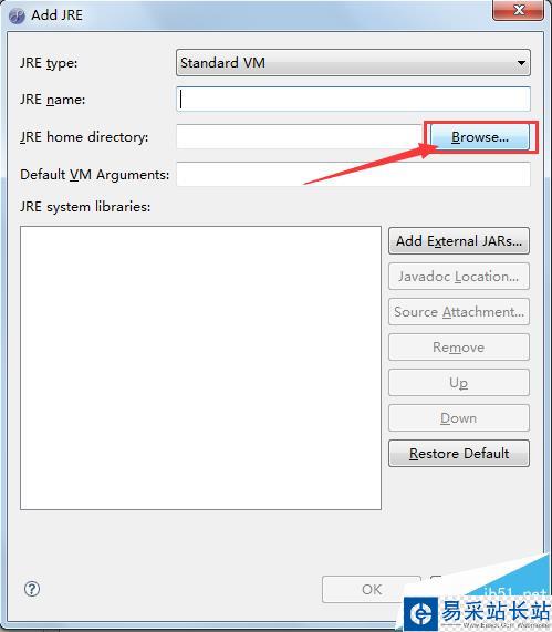 3、在Add JRE窗口中,點(diǎn)擊 Browse...,尋找jdk1.6所在目錄