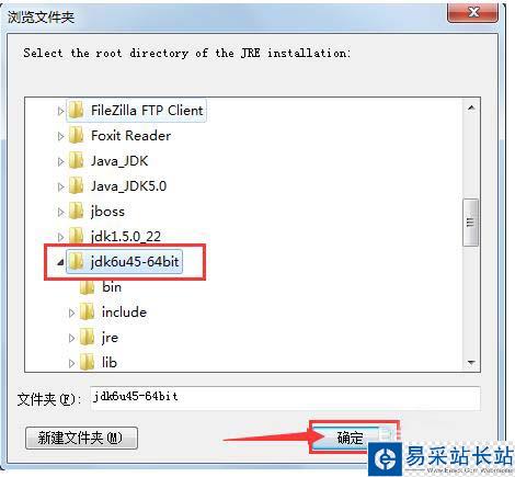 4、在瀏覽文件夾窗口中,找到j(luò)dk1.6所在目錄,選中它,然后點(diǎn)擊 確定。小編這里的文件夾的名字是jdk6u45-64bit